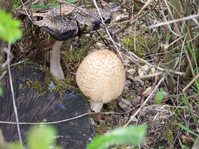 Außerdem fanden wir noch Tintlinge an einem Baumstumpf. Es handelte sich vermutlich um einen abgeholzten Weißdorn. Die Triebe neben dem Stumpf sahen danach aus und es gab auch noch nicht abgeholzte Weißdornsträucher mit dem gleichen Stammdurchmesser in der Nähe.
