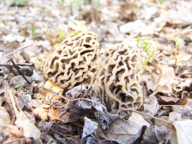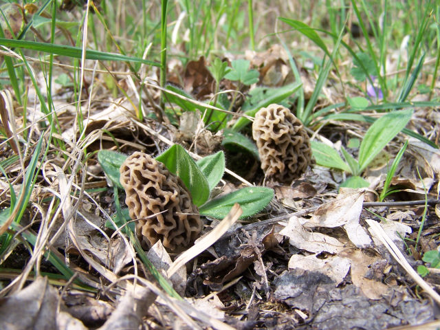 Anschließend ging es weiter zu der Stelle, an der ich bereits zwei Tage zuvor Morcheln gefunden hatte. Und wie das so ist, entdeckten wir eine Menge weitere Exemplare, die schon so groß waren, dass ich sie wohl übersehen haben musste oder einen Meter weiter vorbeigelaufen bin. Die Graue Speisemorchel (Morchella esculenta var. vulgaris) ist auf jedenfall hervorragend getarnt. Wir fanden sie sowohl auf Trockenrasen als auch im angrenzenden Eschen-Ahorn-Mischwald. Aber wer weiß, wie viele wir übersehen haben...