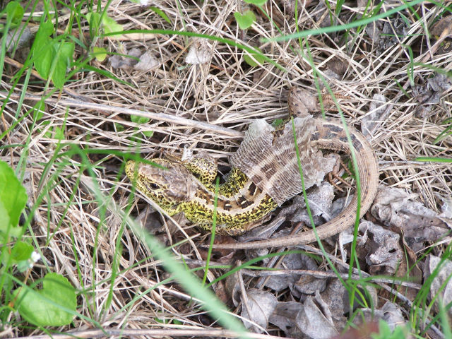Hallo! Heute war ich (Mario) zusammen mit Thüringer-Holz (Felix), seiner Freundin Jenny und Hund Maggy unterwegs im Pennickental bei Jena. Und jetzt während ich das schreibe, fällt mir auf, dass ich leider gar kein Bild der Teilnehmer habe. Naja, vielleicht hat Felix ja eines gemacht? Es ging auf jedenfall sofort gut los. Gleich bei der ersten geeigneten "Stelle", die eigentlich nur auf dem Weg zu einer "Stelle" lag, hörte ich meine Worte "... hier könnten sie eigentlich auch schon wachsen" - oder so ähnlich - kaum verhallen, als wir die ersten Exemplare von Morchella esculenta var. vulgaris fanden. Während Jenny und Felix diese Morcheln bestaunten, konnte ich eine sich häutende Eidechse beobachten.