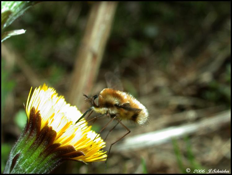 den Wollschweber habe ich letztens auch an einer Blüte vom Huflattich fotografiert, wußte aber nicht, was es ist.
