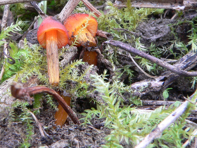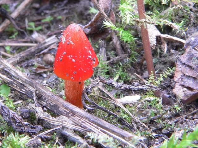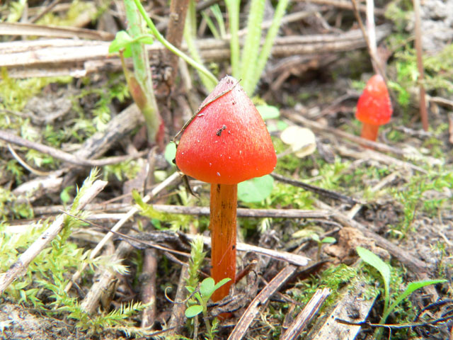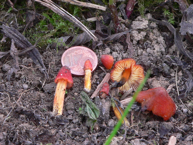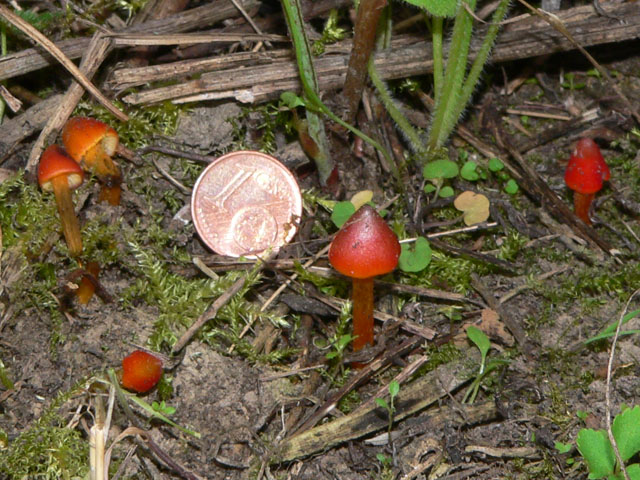 Heute abend auf einem etwas verwilderten Kirschbaumfeld am Rande der Rheinebene. Ich habe mit der Sense gegen Goldähren,Brennesseln, Brombeergestrüpp und sonstige Gewächse gekämpft(und dabei fast einen Igel rasiert). Da sah ich plötzlich rote Punkte auf der Erde.