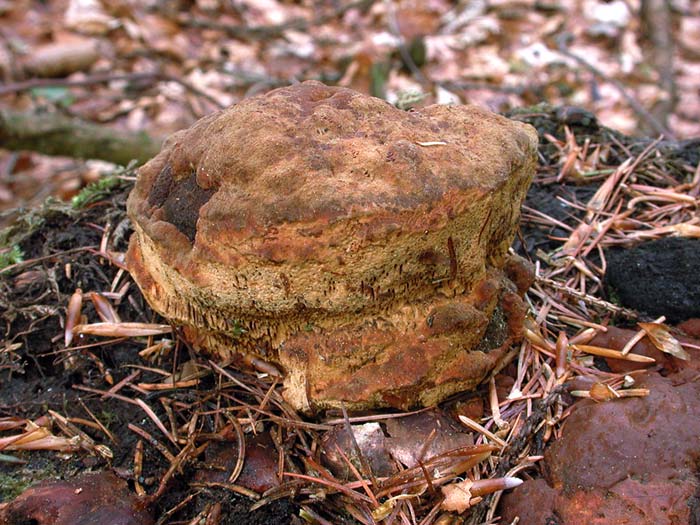 Spp. dunkelbraun, ohne purpur. Die Sporen waren goldbraun, rundlich bis eiförmig