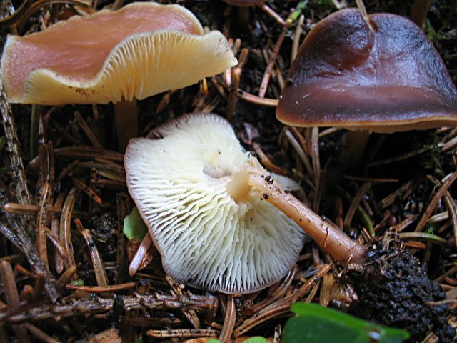 Hallo, ich könnte mir Vorstellen das Gymnopus ocior (Gelbblättriger Blasssporrübling) zu Bild 3 passt. Aber ohne Garantie. Auf jeden Fall aus der Ecke der Waldfreundrüblinge. Vergleich mal mit meinem Fund von 2005.