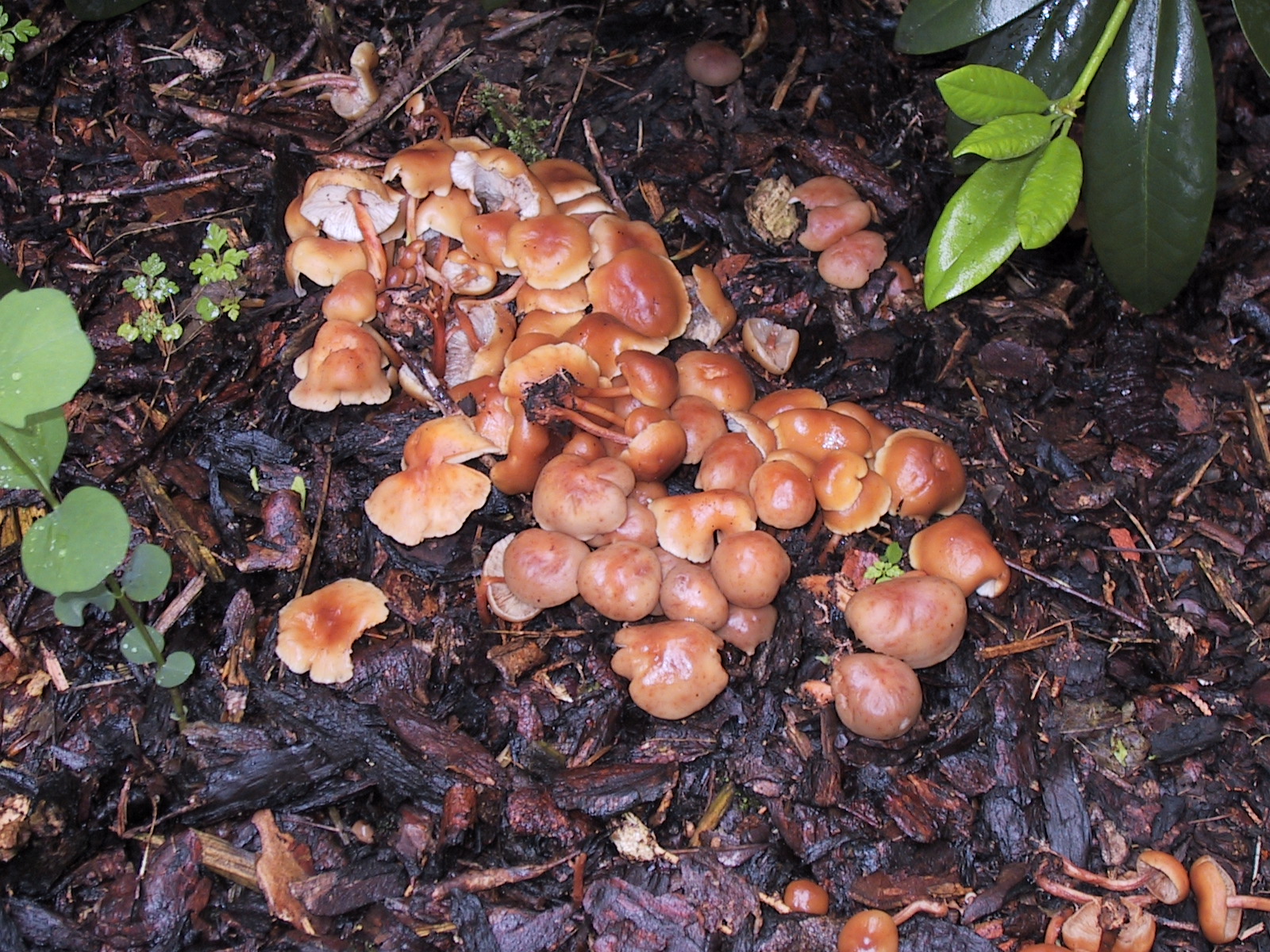 Anbei ein paar (diletantische) Bilder unserer Massenpilze im Vorgarten.
