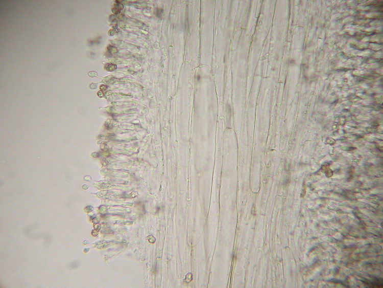 Lamellentrama regulär und ohne Schnallen, keine Hymenialzystiden vorhanden:
