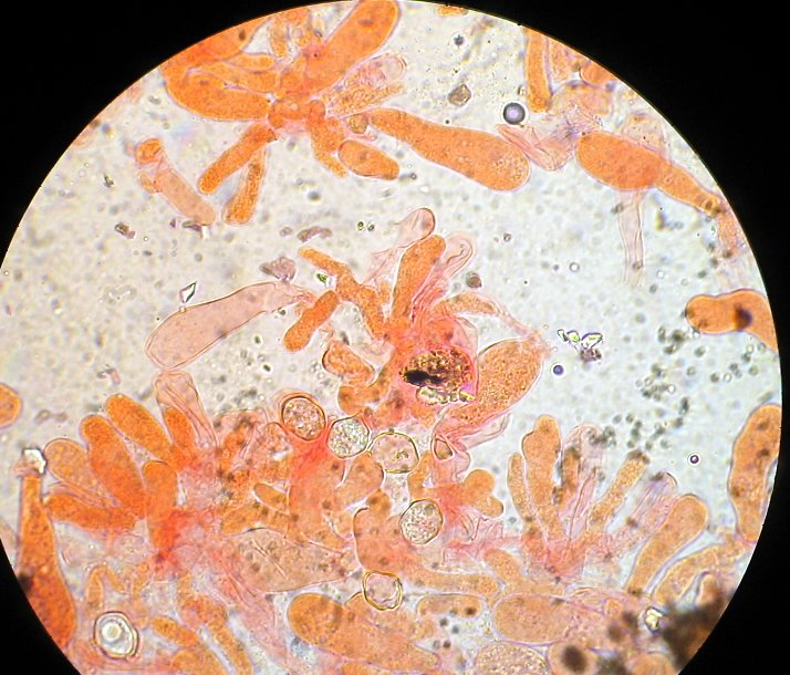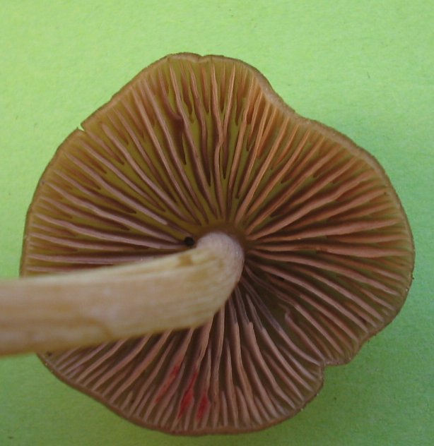 Lasst Euch nicht durch die rote Stelle an den Lamellen irritieren, das ist das Färbemittel für das Mikro-Präparat dran gekommen.