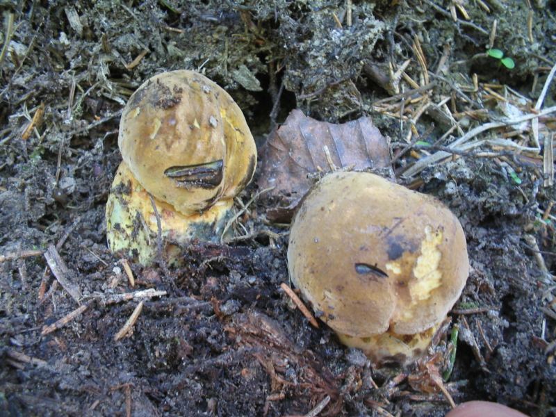 Baby Flockie's (Boletus erythropus) wollen an die Oberfläche