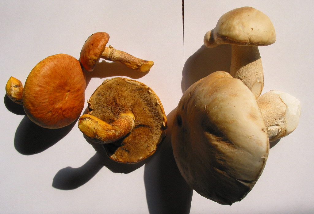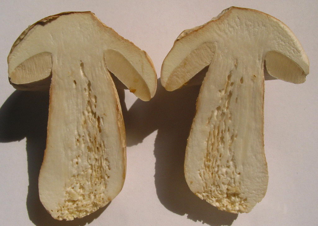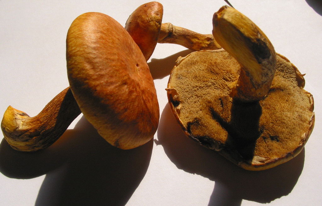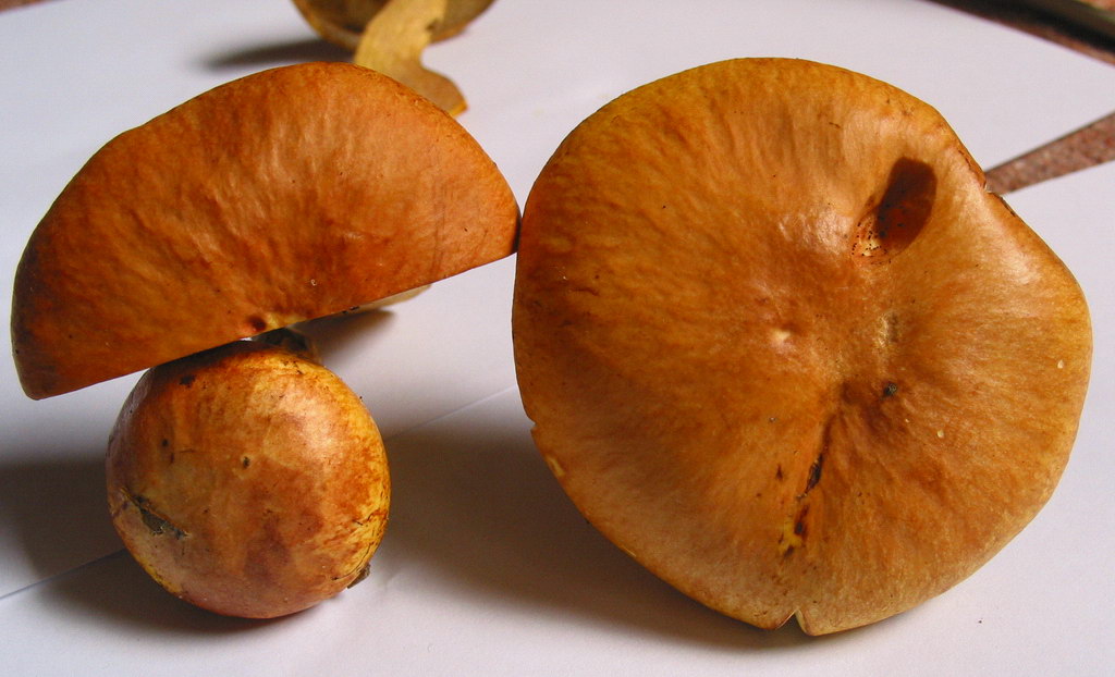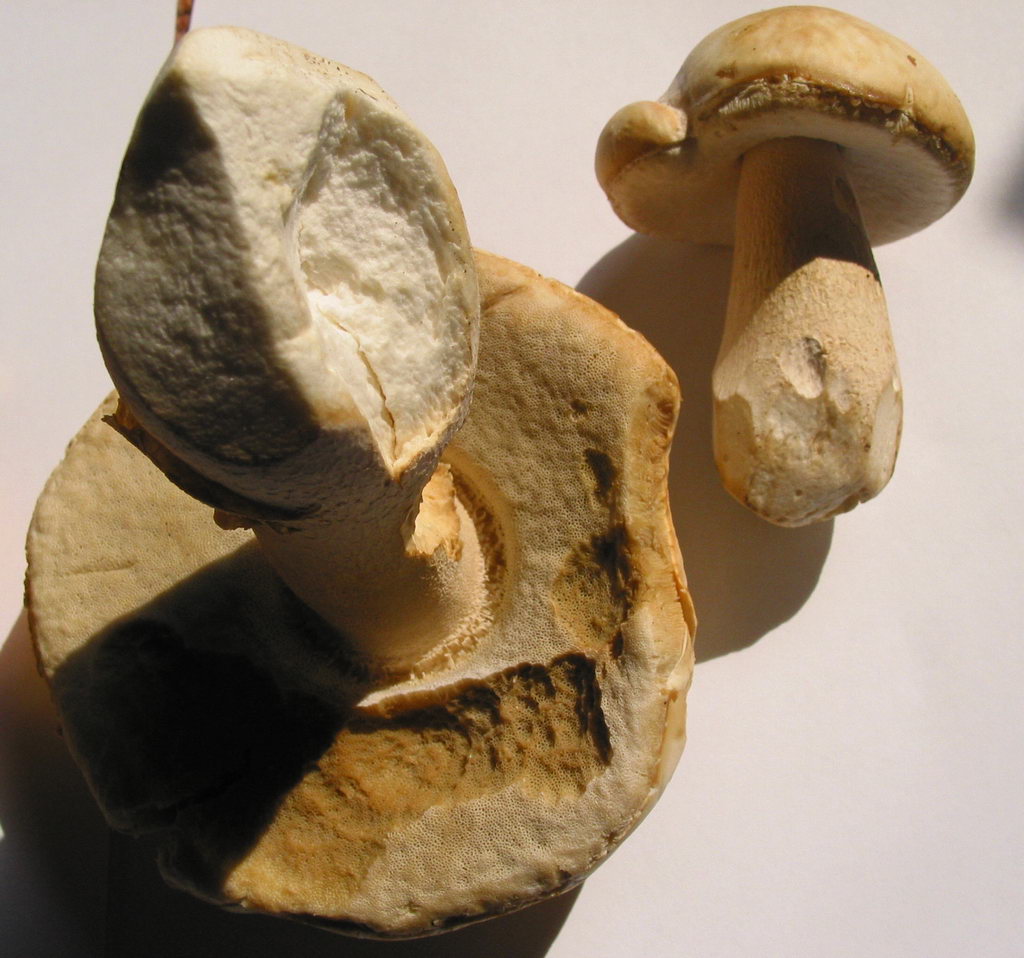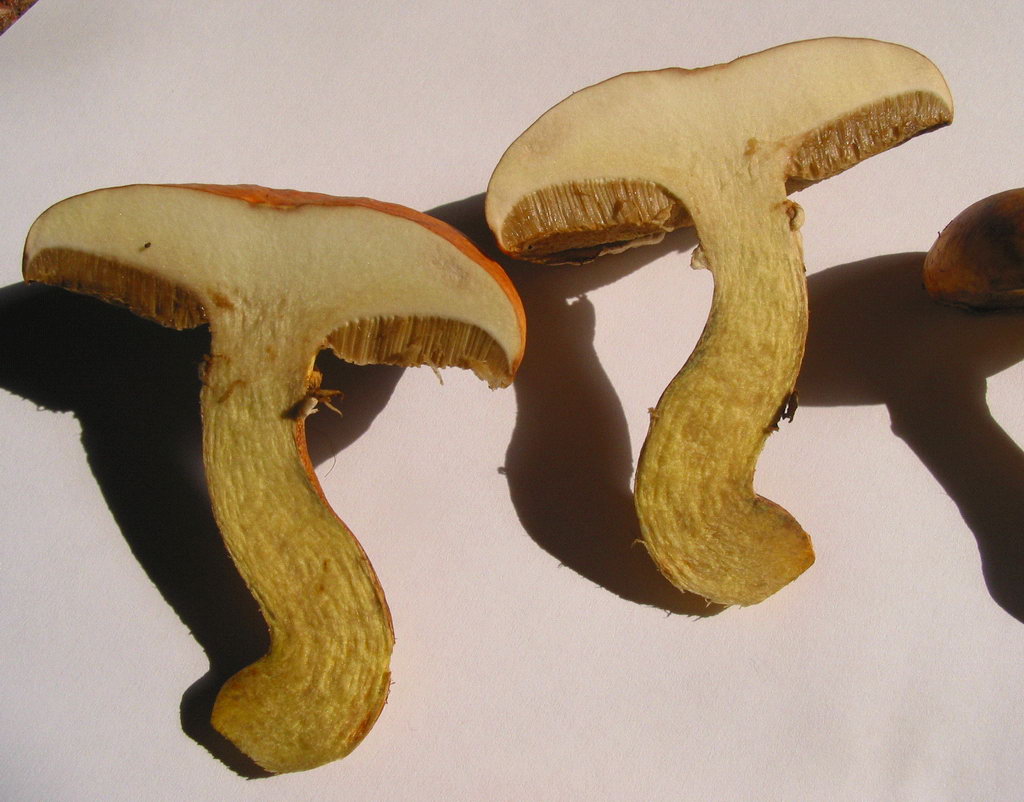 Beim Braunen kann man die Huthaut etwa bis zur Hälfte abziehen. Um den Stiel herum sind die Röhren etwas zurückgestellt, also nicht wie beim Goldröhrling leicht herablaufend (auch keine Lärchen in der Nähe, soweit ich mich erinnere). Wie Bert schon richtig bemerkte, kann es der Sandröhrling auch nicht sein.