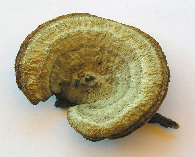 Auf dem Eichenbalken unserer Pergola wuchs der folgende Pilz: