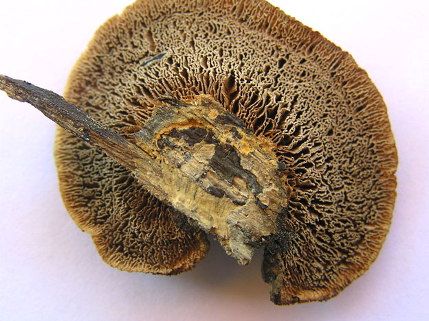 Der Durchmesser beträgt 3cm, er ist schon ziemlich trocken und nicht mehr bereit Sporen abzugeben. Trotz intensiven Studiums der mir zu Verfügung stehenden Pilzliteratur,habe ich keine Ahnung, was es sein kann. Ich hoffe, ihr könnt mir weiterhelfen. Hoffnungsvolle Grüße Roswitha
