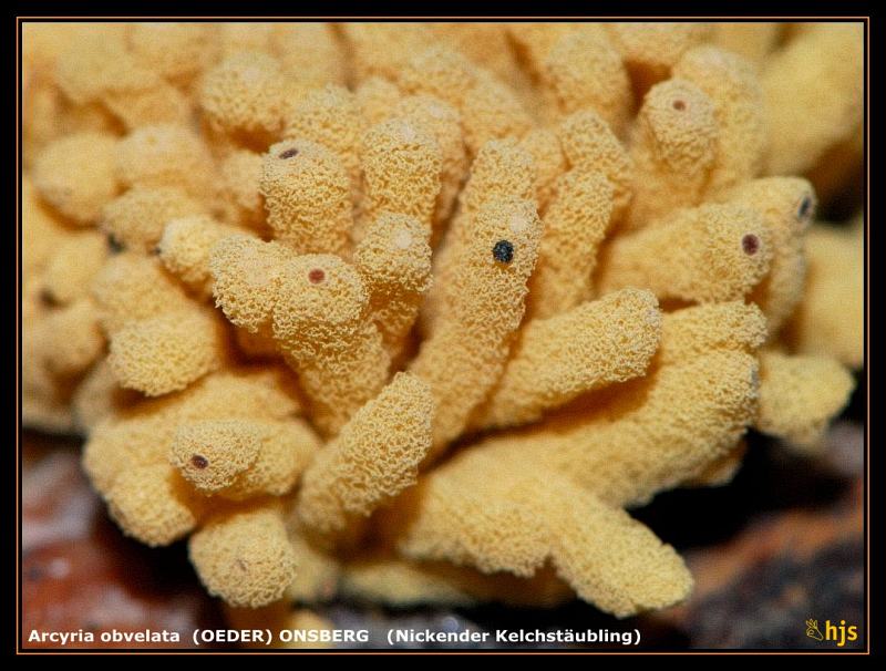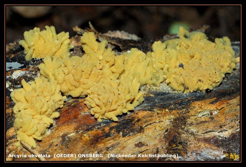 Hallo Forum, wenn ich beim abschließenden Pressegespräch richtig mitgehört habe, sollen Spezialisten aus den verschiedensten Fachgebieten beim GEO-Tag der Artenvielfalt am 17. Juni 2006 im Hafenlohrtal (Spessart) 1.000 verschiedene Arten erfasst haben. Die Pilzkundler, mit zwei mehrköpfigen Teams vertreten (darunter auch Matthias, Rudi und Heinz Engel aus Coburg), haben dazu vergleichsweise bescheidene Zahlen beigetragen: Rudi hat, schätze ich, knapp 50 verschiedene (und überwiegend recht geläufige) Arten mitprotokolliert. Das Hafenlohrtal ist ohne Zweifel ein Pilz-Dorado (auch in kulinarischer Hinsicht), aber im Juni eben mykologisch meist dünn bestückt (weswegen man eine Wiederholung später im Jahr plant). Es überwogen die Totholzpilze - darunter etliche Schleimpilze. Fuligo septica, die schwefelgelbe Lohblüte, war in allen Stadien reichlich vertreten. Daneben fanden wir Stemonitis fusca - und Arcyria obvelata (OEDER) ONSBERG, den nickenden Kelchstäubling, der in den meisten Büchern (z.B. auch bei Jahn, Pilze auf Holz, Nr. 220) unter dem Synonym A. nutans (BULL.) GREV. geführt wird. Da er zu den häufigsten Schleimpilzen zählt, dürften die meisten Pilzsammler ihm schon einmal begegnet sein - zumindest in seinem generativen Stadium, wenn er netzstrumpfartige, winzige Fruchtkörper bildet, die sich im Wind bewegen und dabei ihr gelb-ockerliches Sporenpulver absondern.