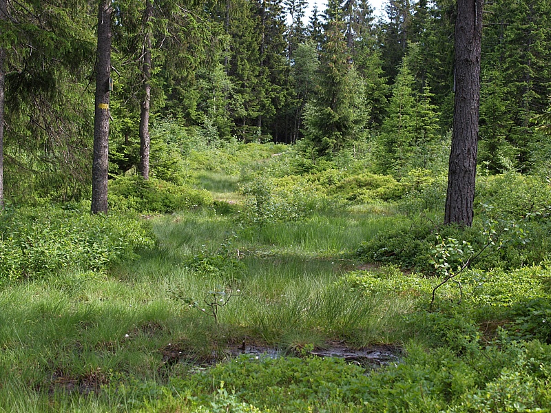 Einige Minuten Fußmarsch führt einen in ein uriges und sumpfiges Waldstück,