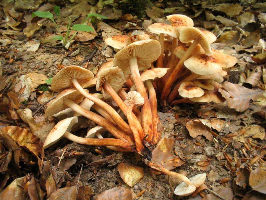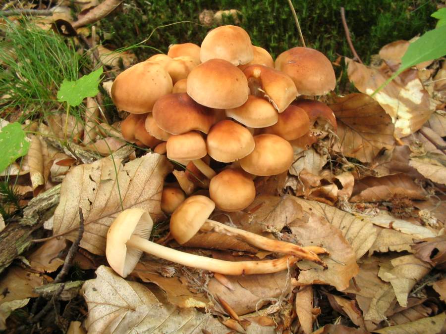 und momentan häufig unter Buchen Collybia fusipes (Spindeliger Rübling):