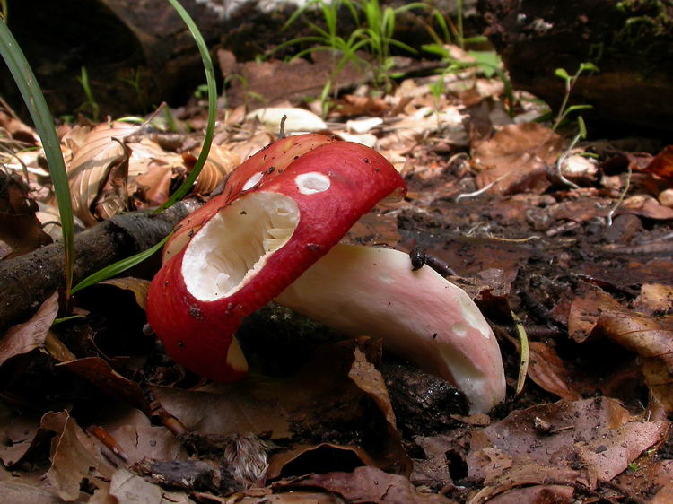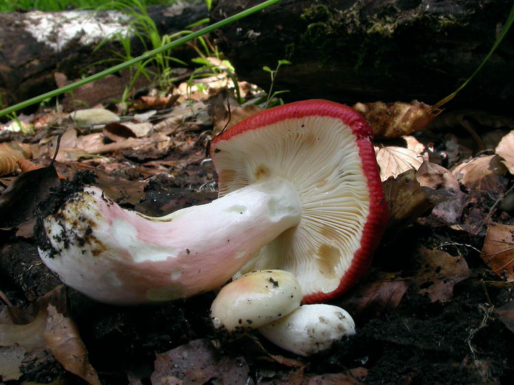 den folgenden Täubling, gefunden im Kalk-Buchenwald an der Isar an einer wärmebegünstigten, gut besonnten Stelle, habe ich als R. maculata, den Gefleckten Täubling, bestimmt. Da ich die Art aber nicht kenne, wär's kein Wunder, wenn ich daneben liege.