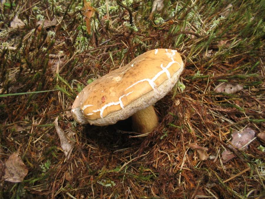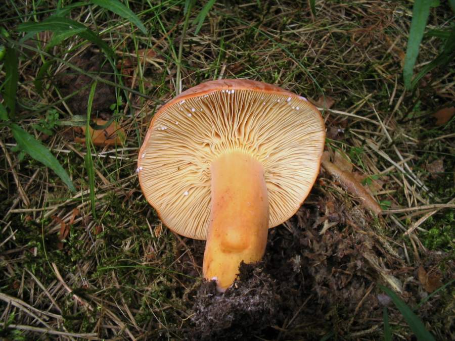 Ausserdem hatte ich noch Rudi's Kommentar im Kopf: "Also bei uns hats seit zwei Wochen nicht geregnet...und der Wald ist voll von allen möglichen Pilzen....den Täublingen z.B. scheints nichts auszumachen." Also wagte ich mich 2 Stunden in staubtrockenes Gelände und wurde positiv überrascht: Das Rätsel wurde ja schnell gelöst hier 2 weiter Fotos vom Brätling (Lactarius volemus)
