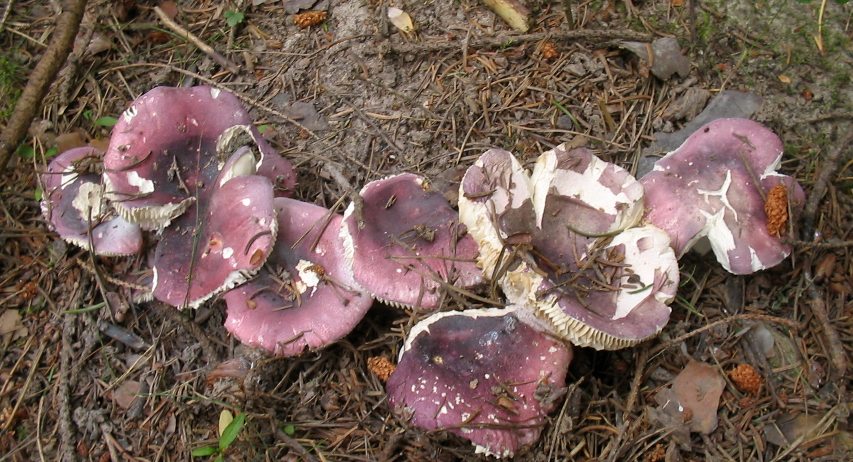 An dieser Stelle einige unverwüstliche Täublinge von gestern aus Ilmenau. Eine kleine Schwemme vom Violetten Reif-Täubling - Russula azurea.