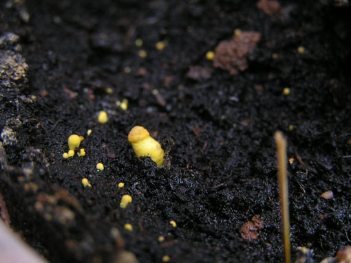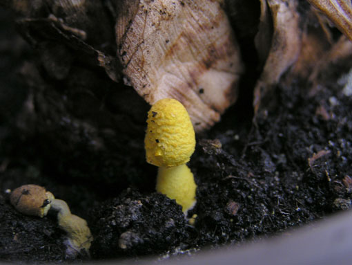 habe ich heute Morgen "Leucocoprinus birnbaumii" entdeckt: