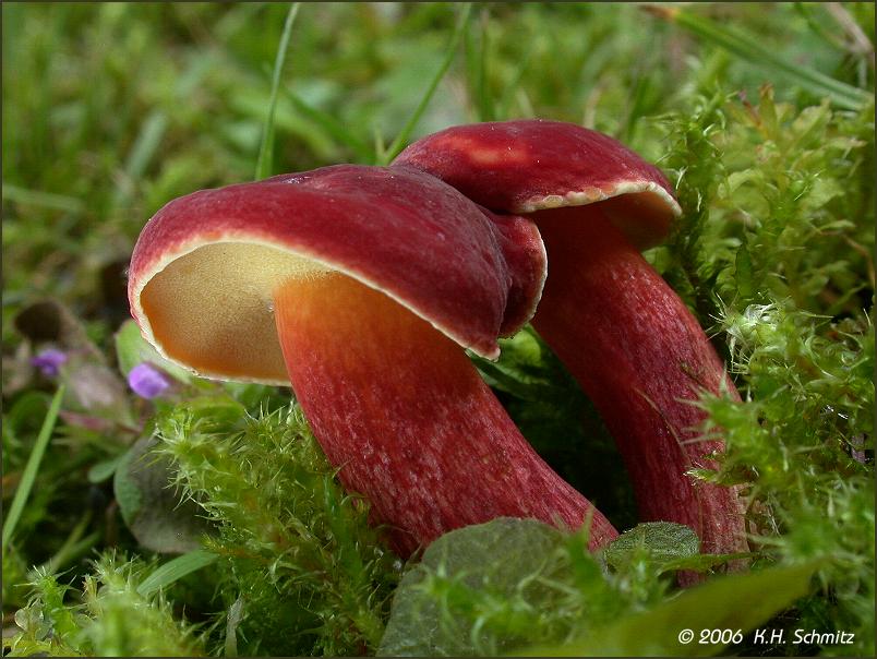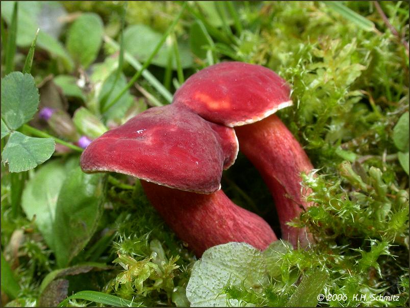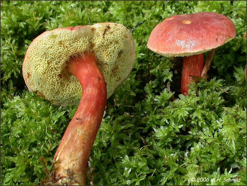 Junge Fruchtkörper vom Blutroten Röhrling, Xerocomus rubellus