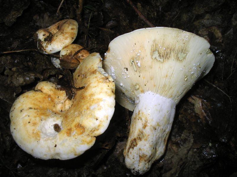 Mit diesem Täubling (gefunden unter Eichen) kämpften Jochen und ich bis in die späten Abendstunden, noch ohne Erfolg. Typisch: auf Druck intensives Röten und selbst nach 3 Stunden immer noch nicht schwärzend, kein Mentholgeruch oder Geschmack, Lamellen mild, Fleisch mild. Zu Mikros hatten wir heute keine Lust mehr. Irgendwie passte er auf keine der von uns überprüften Schwärztäublinge.Habt ihr eine Idee?