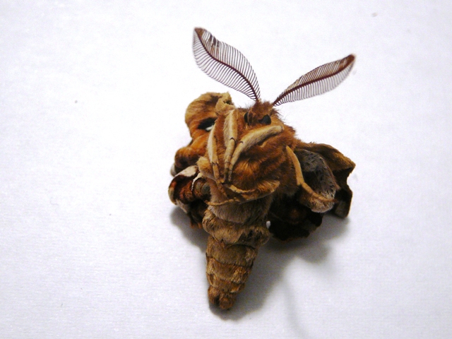 Ich bin überzeugt, dass hier "unter uns" auch ein paar Tierspezialisten sind. Den folgenden Falter habe ich beim Abräumen des Weihnachtsbaumes gefunden. Als ich ihn fand lebte er noch. Er hockte sehr gut getarnt und ganz ruhig auf unserer Krippe (ein alter Baumstrunk). Es war wirklich ein Zufall, dass ich ihn entdeckt hatte. Ich vermute, dass ich ihn mit dem Moos, dass ich für die Krippe verwendete, in das Wohnzimmer eingebracht hatte. Fliegen konnte der kleine Kerl nicht. Ich habe das Gefühl, dass seine Flügel nicht ganz entwickelt sind oder verkrüppelt sind. Er flatterte mit den Flügeln wie wild, aber leider konnte er nicht fliegen. Ich habe ihm dann ein wenig Zuckerwasser vorgesetzt, in der Hoffnung, dass er sich ein wenig stärken könnte. Leider war der kleine Kerl am andern Morgen tot. Somit konnte ich ihn heute Abend auch problemlos fotografieren. Hier ein Bild der Krippe