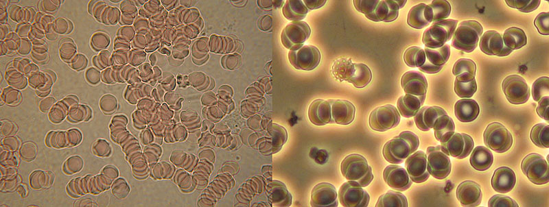 Nun Blut aus meinem Finger - hier habe ich aber leider keine Fotos gefunden, die mit absolut den gleichen Zoom-Einstellungen am Mikroskopobjektiv waren.