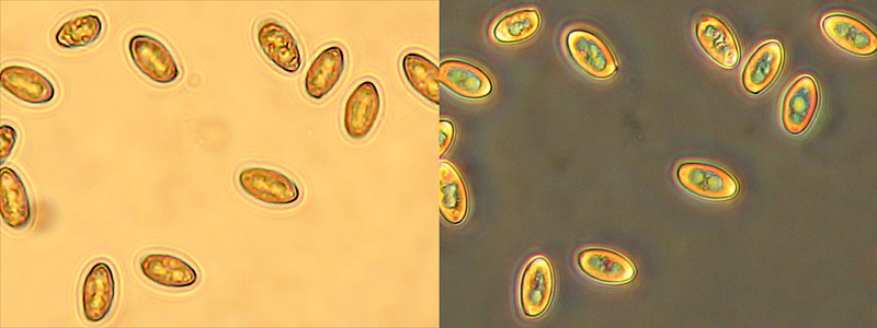 Zuerst Netzstieliger Hexenröhrling - Boletus luridus, Sporen.