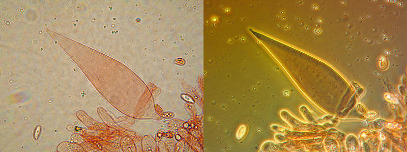 Nun Gurkenschnitzling - Macrocystidia cucumis, Zystiden.