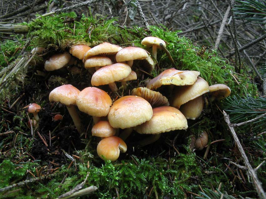 im Fichtenwald gab es Unmengen von Rauchblättrigen Schwefelköpfen