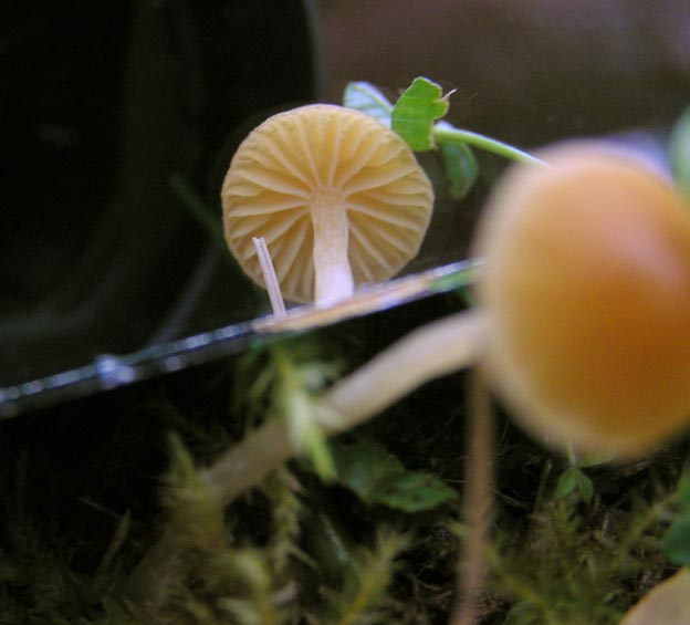 Bei der Krokus-Aufnahme bin ich über dieses kleine Pilzchen gestolpert. Mit etwas goodwill passt er noch in die gelbe Reihe, vielleicht mit dem Zusatz "ocker" davor.