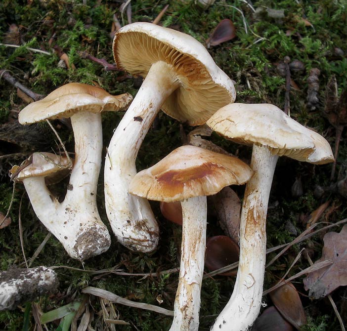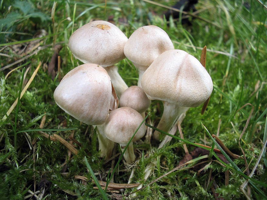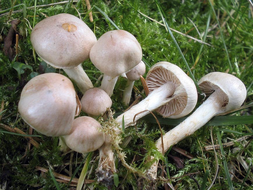 Ganzer Pilz einheitlich hell weiß/beige getönt mit leichtem fleischrosa Hauch am Hut. Büschelig wachsend. Hut leicht filzig.