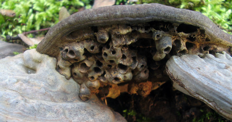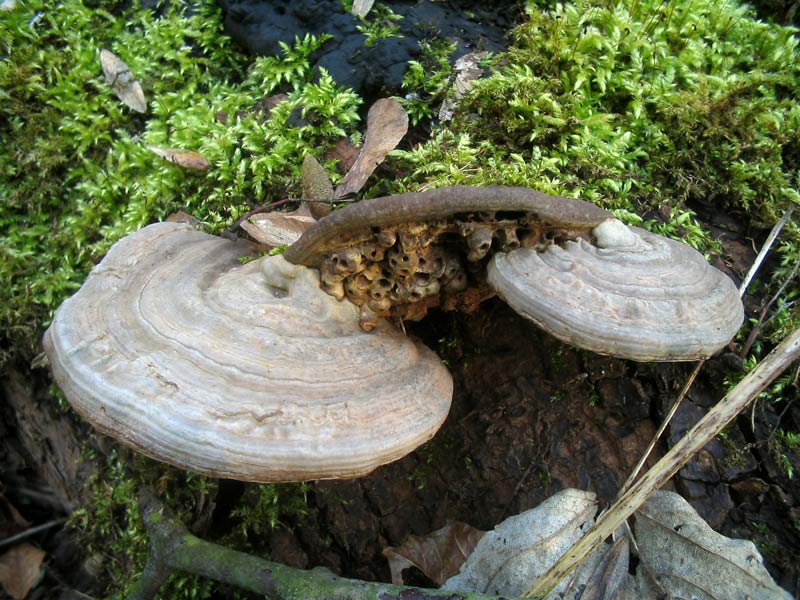 Das Spannendste war noch dieser Flache Lackporling (Ganoderma applanatum), der wohl von Insekten als Nest genutzt wurde.