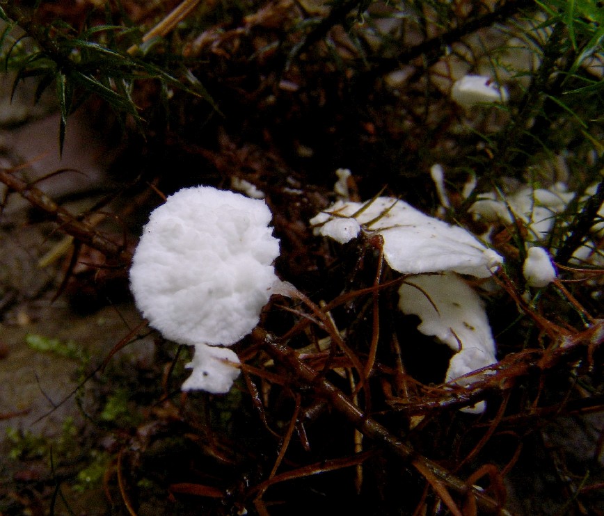 Zum anderen habe ich noch zu einer zweiten Art eine Idee, ebenfalls ein Moos-Bewohner (s. Foto 2). Beim ersten Hinschauen hatte ich eine Arrhenia-Art vermutet, was aber irgendwie nicht ganz passen konnte. Heute abend bin ich auf eine Gattung gestoßen, die mir bislang unbekannt war: Rimbachia. Im Gröger wird sie gar nicht aufgeschlüsselt, im Horak kommen zwei Arten in Frage: R. arachnoidea und R. neckerae. Leider habe ich die Art damals nicht mikroskopiert und auch nicht - warum auch immer - mitgenommen. Nun ja, meine Frage: Könnte es sich um eine Rimbachia-Art handeln? Oder bin ich völlig auf dem Holzweg? Würde zumindest gerne einen Gattungsnamen ans Foto schreiben, auch wenn sie mehr nicht mikroskopiert werden kann.