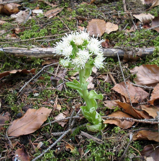 In einem der nördlichsten Weiß-Tannen-Bestände (Abies alba) Deutschlands bei Weißer Pestwurz (Petasites albus) auf Muschelkalk