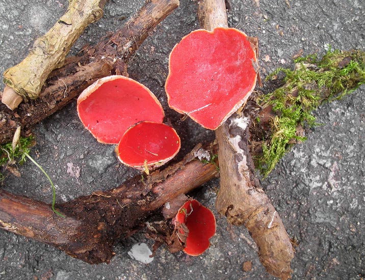 Ein Kollege prachte diesen für Thüringen doch recht seltenen Kelchbecher zur Exkursion mit. Die mikroskopische Bestimmung ergab Sarcoscypha austriaca.