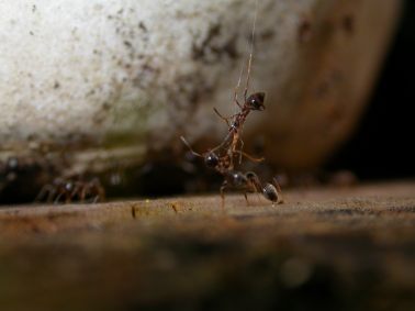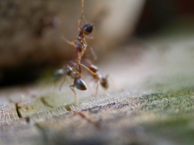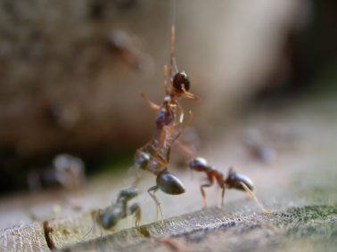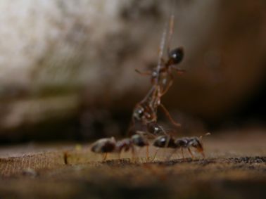 Zuerst beobachteten andere Ameisen die Sache neugierig und versuchten vorsichtig zu helfen, aber