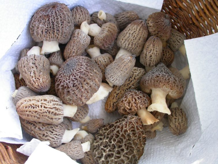 Aber unterm Mulch stehen noch handteller große Morchelansammlungen mit bis zu 20 Stück.
