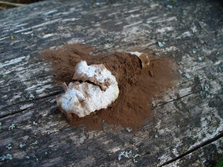 Schuppiger Porling und Schleimpilz in Sporenreife