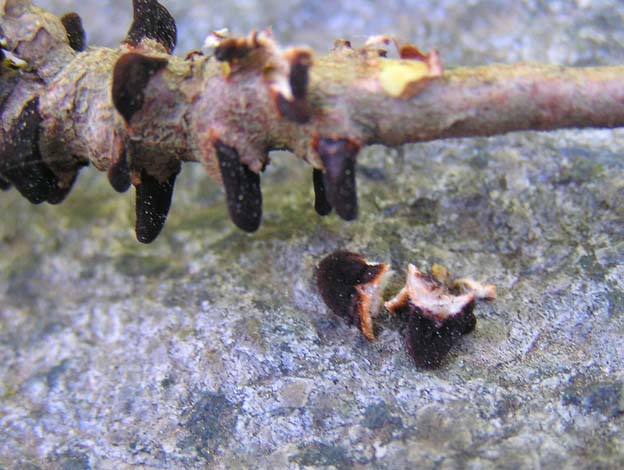 Das zweite Bild ist leider nicht besonders scharf. Die braunen Auswüchse lassen sich leicht vom Ast trennen. Vielleicht kann mich jemand im Forum von meiner Unwissenheit befreien. Liebe Grüße