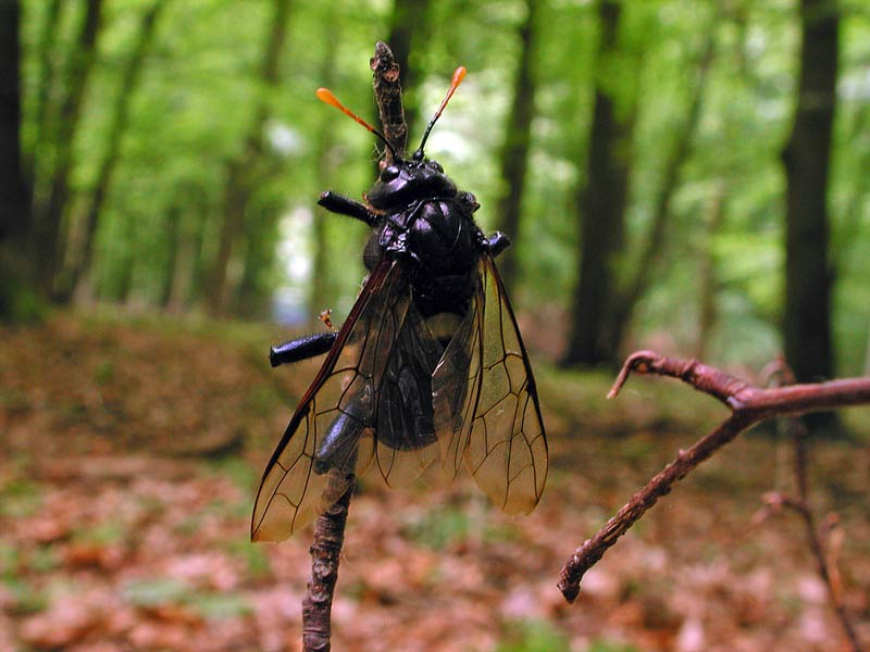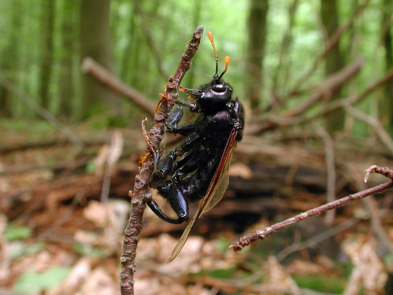 und dann, fast hornissengroß war diese schwarze Wespe, mit großen Kieferzangen und lustigen Bommeln