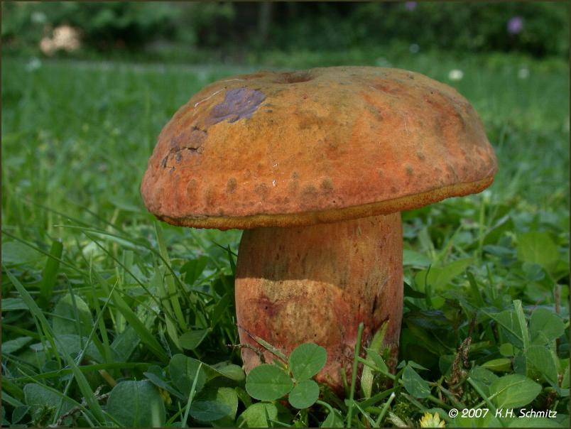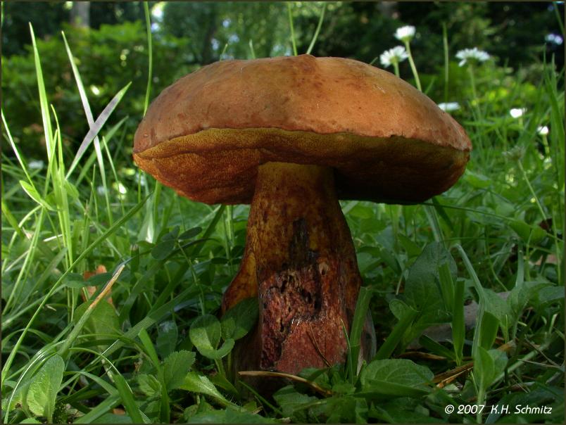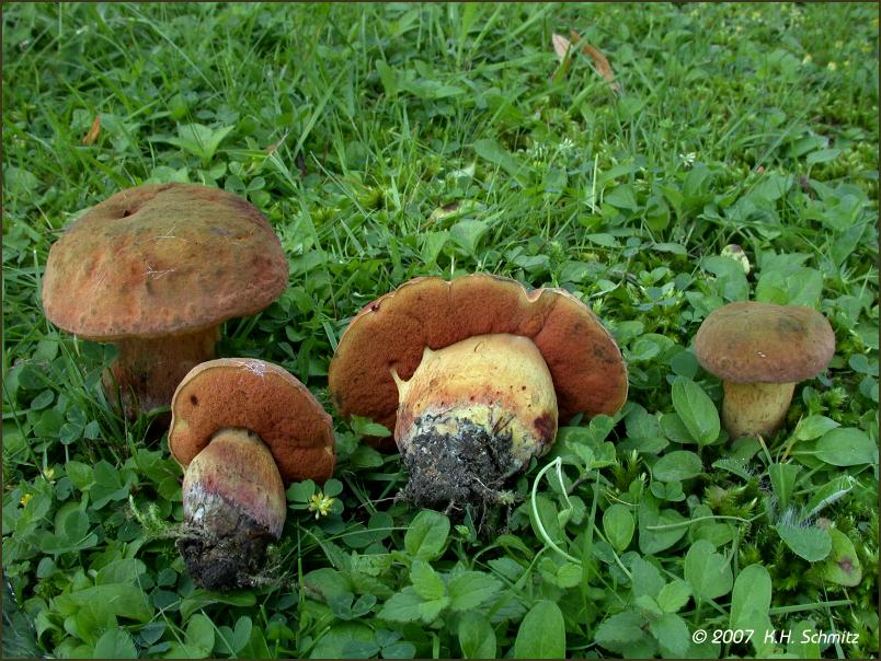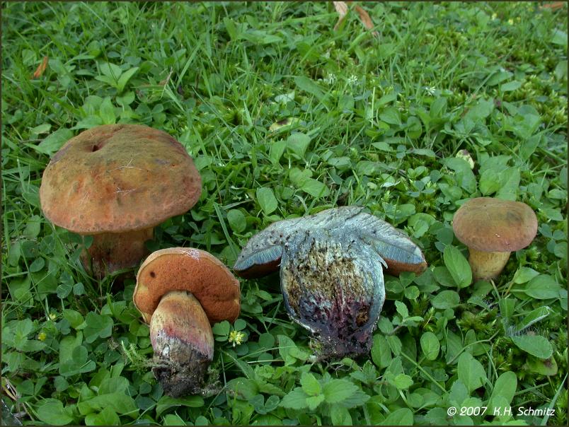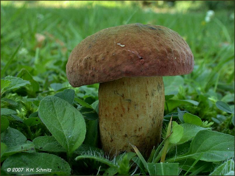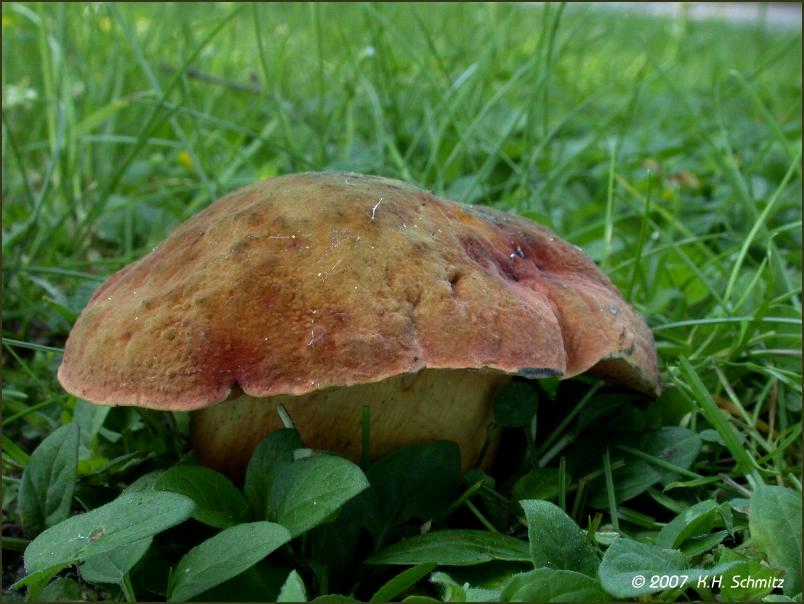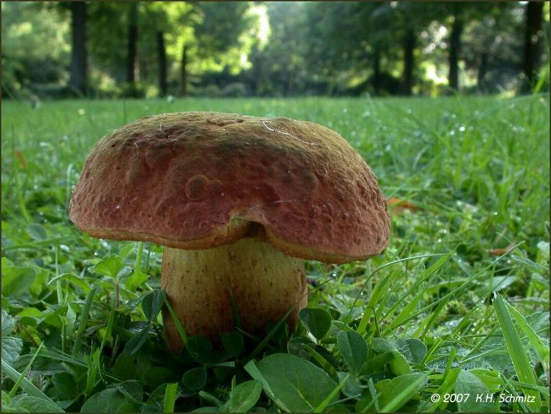 Hallo liebe Pilzfreunde, ist hier der Glattstielige Hexenröhrling, Boletus queletii. Regelmäßig bereits im Juni erscheint er hier unter Linden auf einer Freifläche eines Friedhofs. Viele Grüße
