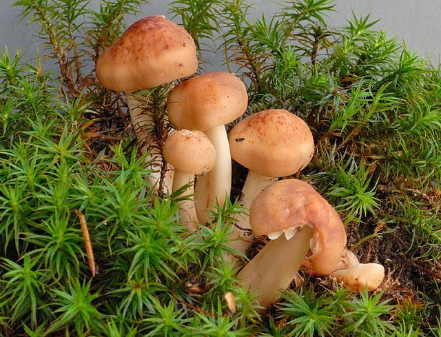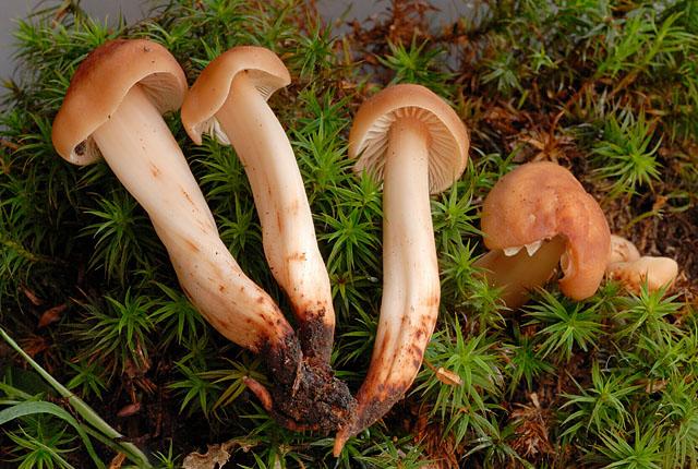 Da die spindeligen Rüblinge offenbar die einzigen Pilze am Blutsee sind, die Thomas/42 bei seinem Rundgang am Sonntag NICHT mitgenommen hat (jedenfalls habe ich bei einer Dämmerrunde heute abend um 9 außer ihnen und ein paar Faserlingen nichts anderes mehr gefunden) und da sie unlängst hier im Forum mal Anlass zu Bestimmungsfragen waren: Hier ein paar Fotos zu den wurzelnden Kerlchen mit der rostenden Haube.