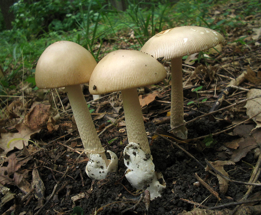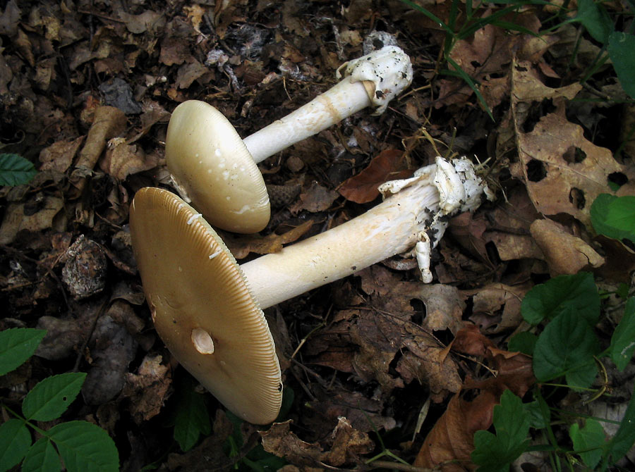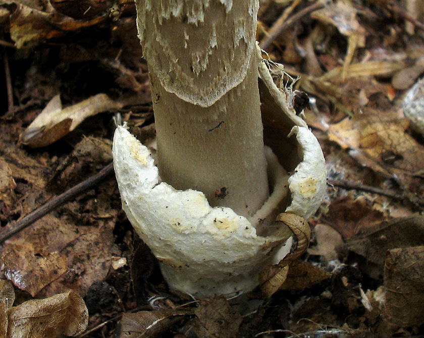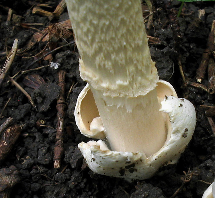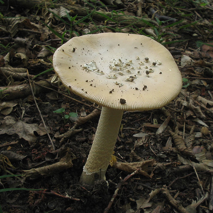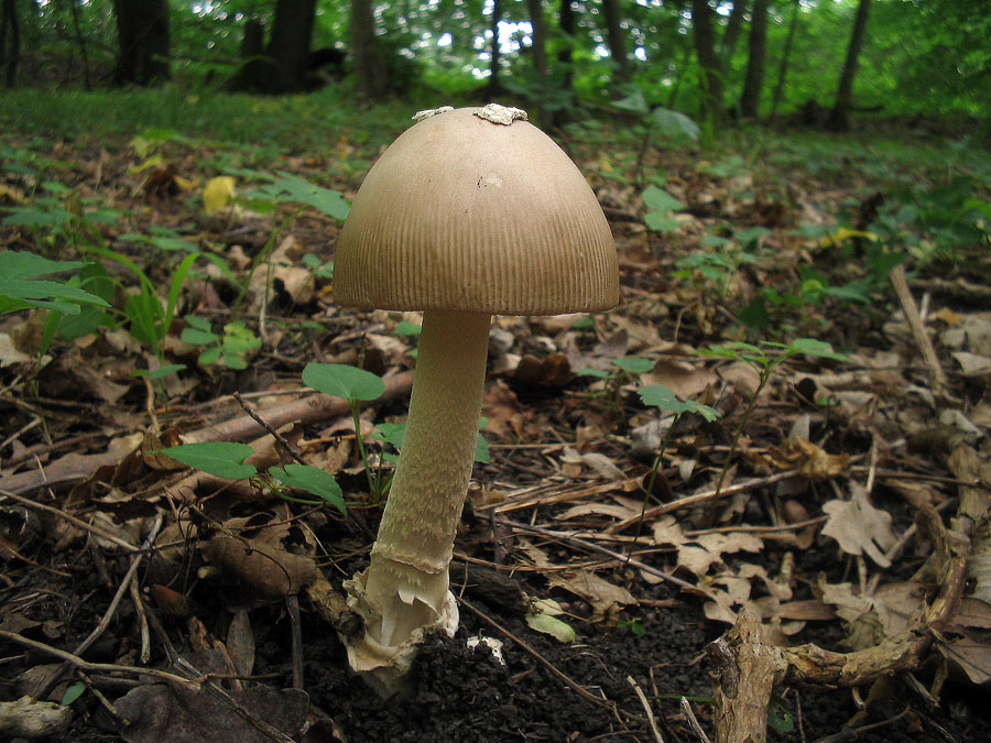 Hut: hell beige bis beige/orange, geriefter Rand, überwiegend ohne Velumreste