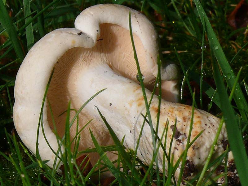 Bitte um Bestimmungshilfe für den abgelichteten Pilz, von dem ich ca. 20 Stck. verstreut unter einer Rotbuche, unweit von einem Sommersteinpilz, fand. Der Stieldurchmesser betrug an der dicksten Stelle ca. 10-12 mm. Das Pilzfleisch war sehr fest, fast weiß und schmeckte scharf wie eine Pepperoni. Ich probierte nur ein winziges Stück ohne es zu kauen und spuckte es dann natürlich schnellstens wieder aus.