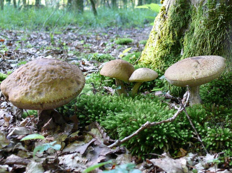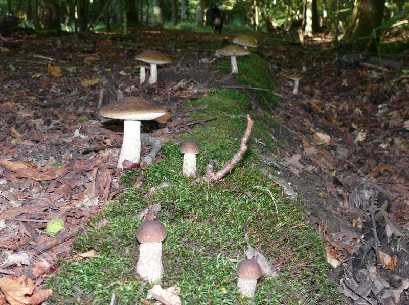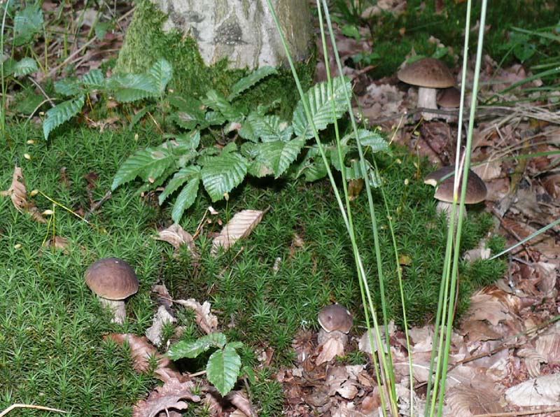 Typische Fundstellen für Hainbuchenrauhfüße und Steinpilze (Steinis aber selten vor September). Auf Bild 1 sind ca. 40 Raufüße, die aber nur zum Teil wegen der geringen Bildauflösung zu finden sind.