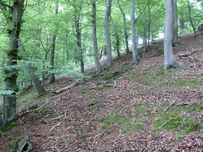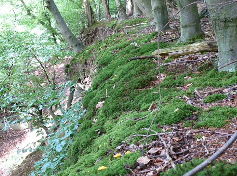 Zuerst einmal einige Bilder von meinen typischen Pfifferlingsstellen, fast alle im Buchenhochwald in Hanglagen auf Moos.