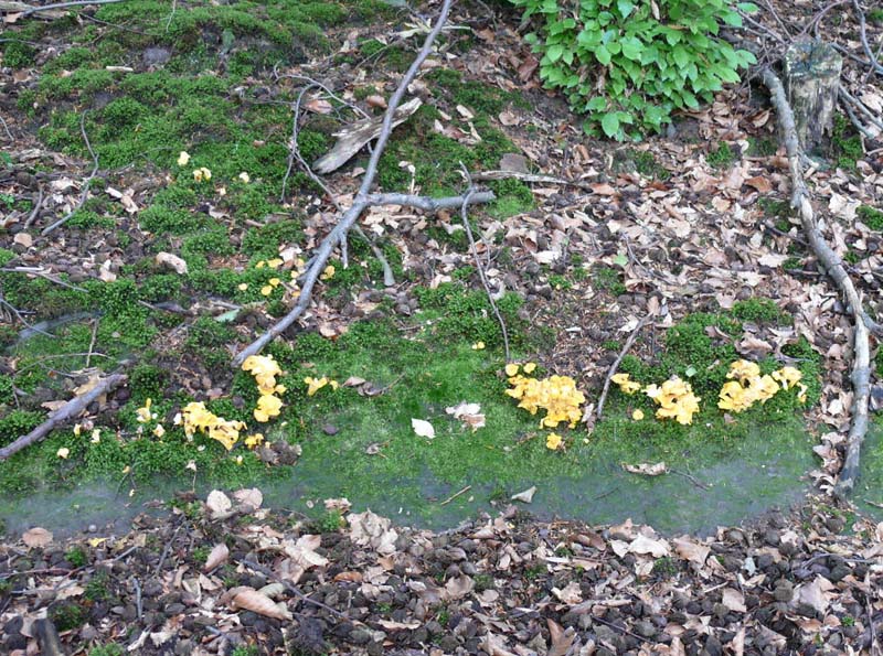 In diesem Jahr scheint es im Lipperland endlich einmal wieder lohnend, Pfifferlinge zu sammeln. Das letzte gute Pfifferlingsjahr für mich war das Pilzjahr 2002. Da hatte es wie auch in diesem Jahr im Mai und Juni in „meinen Pizrevieren“ regelmäßig, ohne längere Trockenperioden, geregnet. Also, wie gesagt, Lipperland ist für mich Steinpilzland, und Pfifferlinge sind eine Rarität. An den wenigen mir bekannten Pfifferlingsstellen finde ich, wenn das Wetter mitspielt, kaum mal eine Hand voll Pfifferlinge. Aber in diesem Jahr läuft es, wie die nachfolgenden Bilder zeigen, besser.