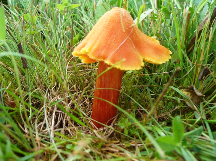 Ich dachte eigentlich den großen Saftling "Hygrocybe punicea" gefunden zu haben.