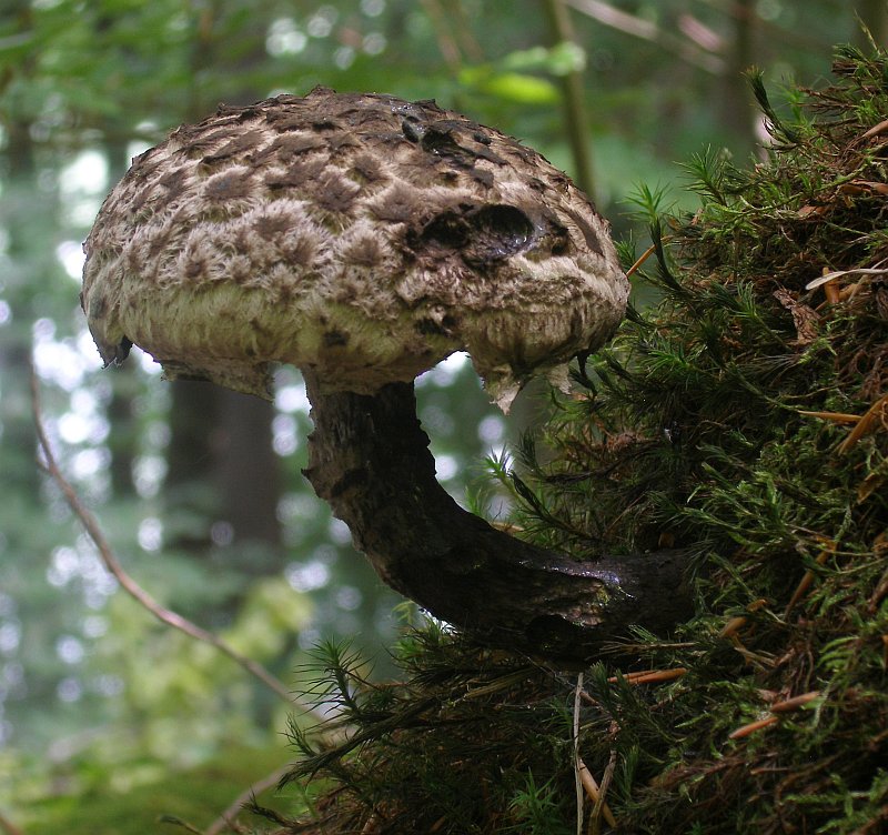 An einer umgestürzten Fichte wuchsen ca. 6 Strubbelköpfe
