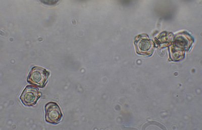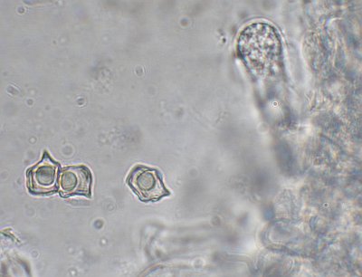 die 2. Sporensorte stammte mit ziemlicher Sicherheit von einem Täubling ( diesmal habe ich besser aufgepasst) und keine Fremdsporen mit ins Präparat gebracht, bin halt noch Mikro-Anfänger Wer hat eine Idee zu diesen Sporen und dem Pilz ???