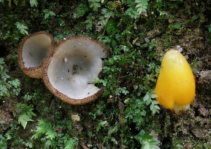 In enger Nachbarschaft Borstlinge mit Saftlingbaby